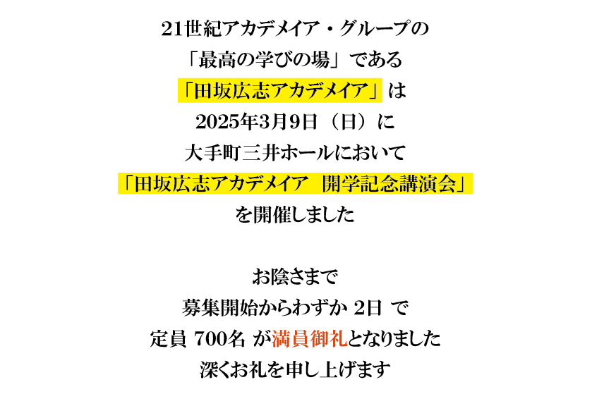「田坂広志アカデメイア 開学記念講演会」