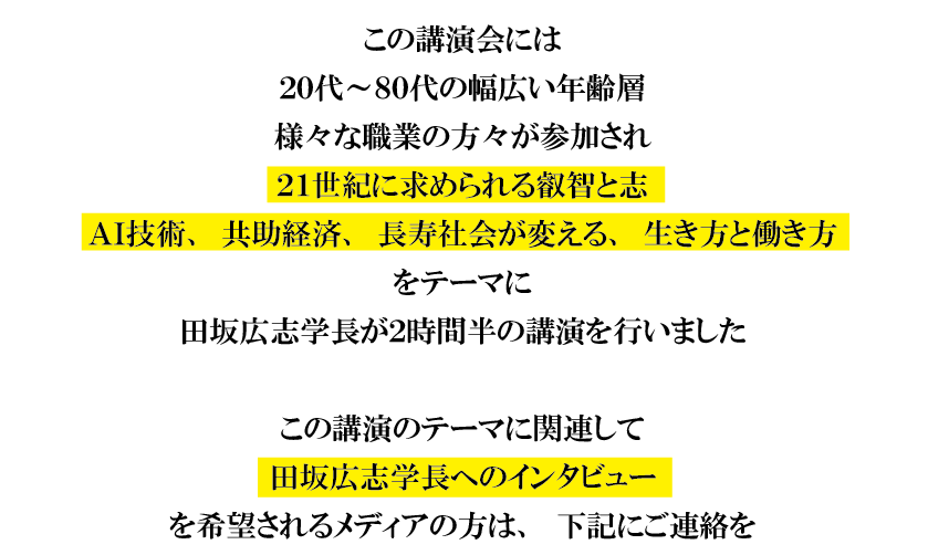 田坂広志学長が2時間半の講演を行いました