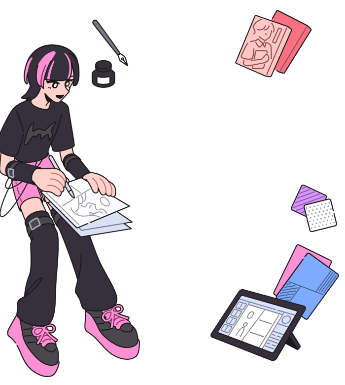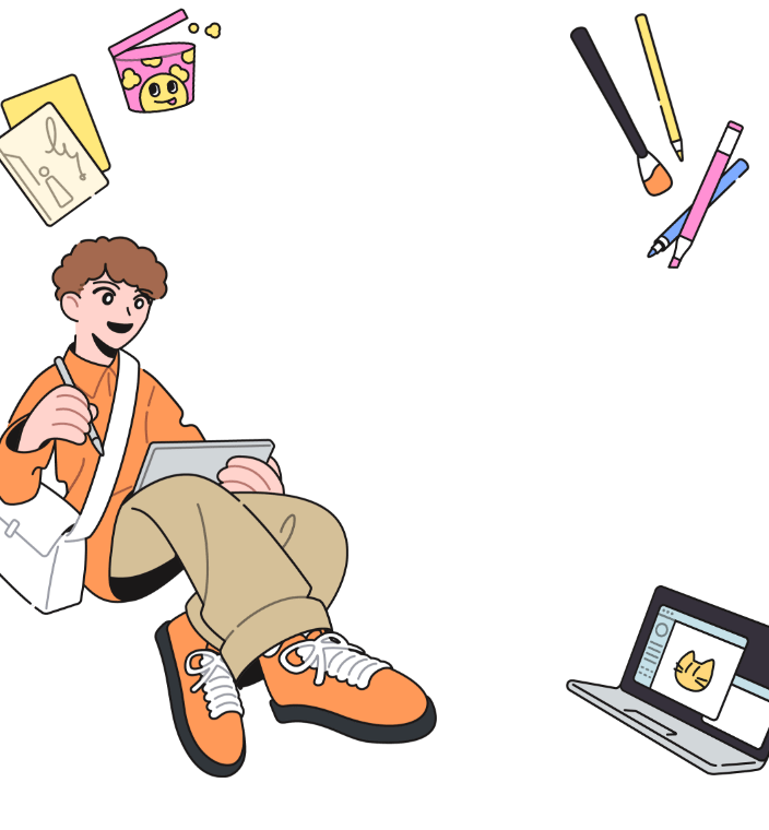 イラストとデザインどっちも全力で学べる! イラストを活かすデザインを中心に幅広いスキルを身につけて 自分の武器や強みをたくさん増やそう!!