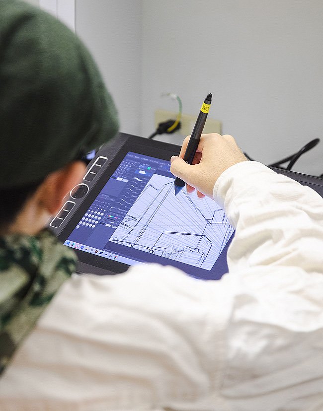 漫画やイラストの基礎となるデッサン、CLIP STUDIOをはじめとしたデジタルソフトの使い方を習得。